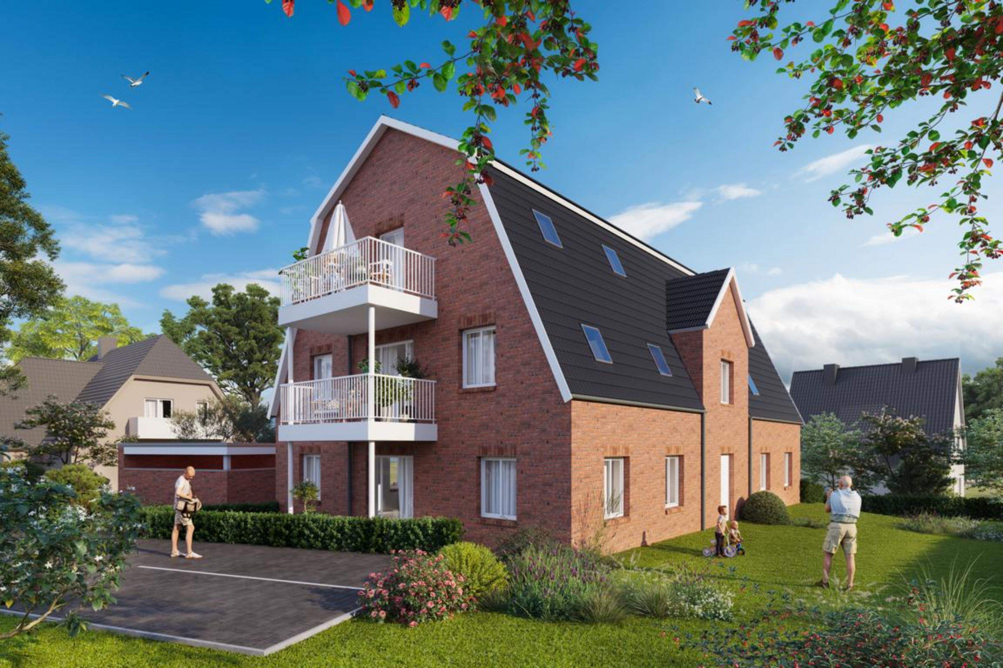 Realisieren werden wir sechs hochwertige Ferienwohnungen mit Wohnflächen von ca. 45 bis 65 m² aufgeteilt auf Erd-, Ober- und Dachgeschoss.